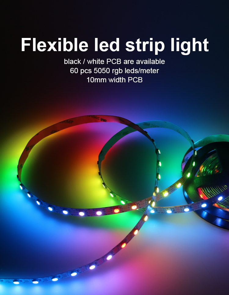 | SJ-10060-SK6812 | 5000mm*10mm | SK6812 SMD5050 | 60 Pixel/m | 420LM | 160° | DC5V | 6-18W | IP20/65 |